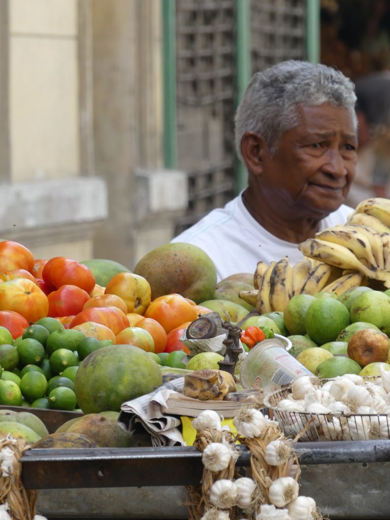 Photo d’un vendeur de fruits et légumes à La Havane
