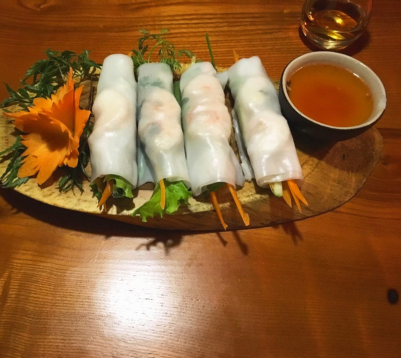 Résultat des courses 15km de marche en une journée et du stress accumulé à chaque traversée de rue ou de carrefours. Place maintenant à un dîner au restaurant HIGHWAY 4 autour d’une table basse pour déguster des spring rolls et un plat de nouilles aux fruits de mer.